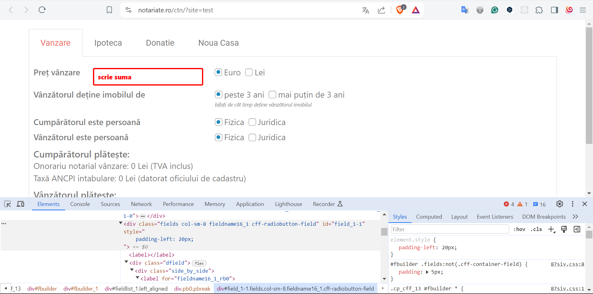 I did the modifications in the browser’s console to check what would be the form appearance with the modifications: