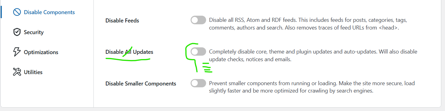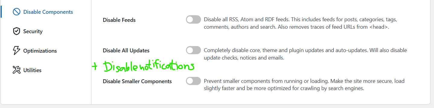 could you please split the “Disable All Updates” function so that only “Disable email notifications” can be selected separately?